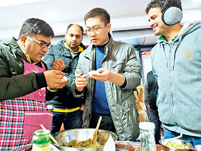 近日,浙江省紹興市上虞區(qū)組織開展在虞外籍高層次人才新春聯(lián)誼活動,組織在虞外籍高層次人才參觀上虞越窯青瓷傳習研究中心、上虞非遺展示館等,參加做青瓷、學剪紙、包餃子等活動,體驗中國傳統(tǒng)文化。圖為外籍高層次人才學習包餃子。