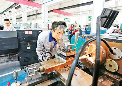 近日,寧波市北侖區2019“港城技能之星”大賽總決賽舉行,來自全區各企業的142名技術能手,在電工(工業機器人)、銑工(加工中心)、汽車維修工、車工(普車)、叉車、茶藝師等項目中開展角逐。圖為參賽選手在進行車工(普車)技能比賽。