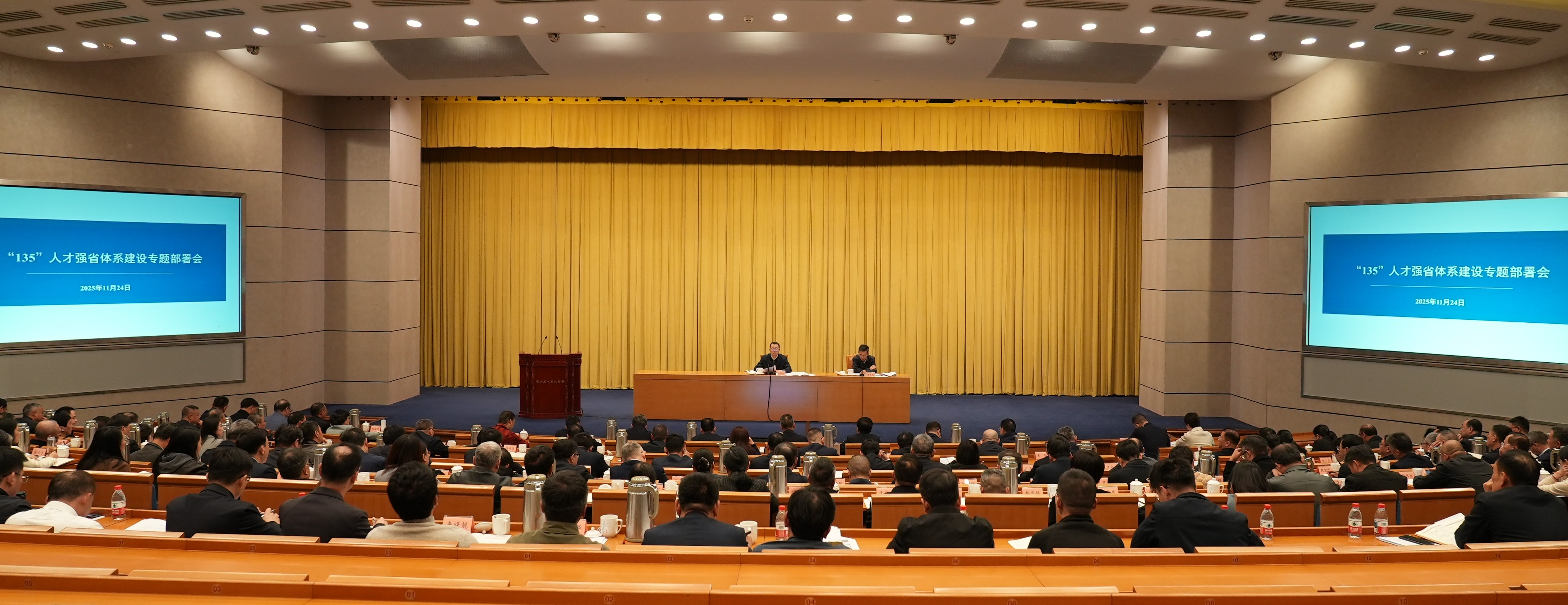 11月24日下午,我省召開“135”人才強省體系建設專題部署會,深入學習貫徹習近平總書記關于做好新時代人才工作的重要思想和考察浙江重要講話精神,落實黨的二十屆四中全會和省委十五屆八次全會精神,研究部署“十五五”時期人才強省建設工作。省委常委、組織部長楊蔭凱出席會議并講話。
