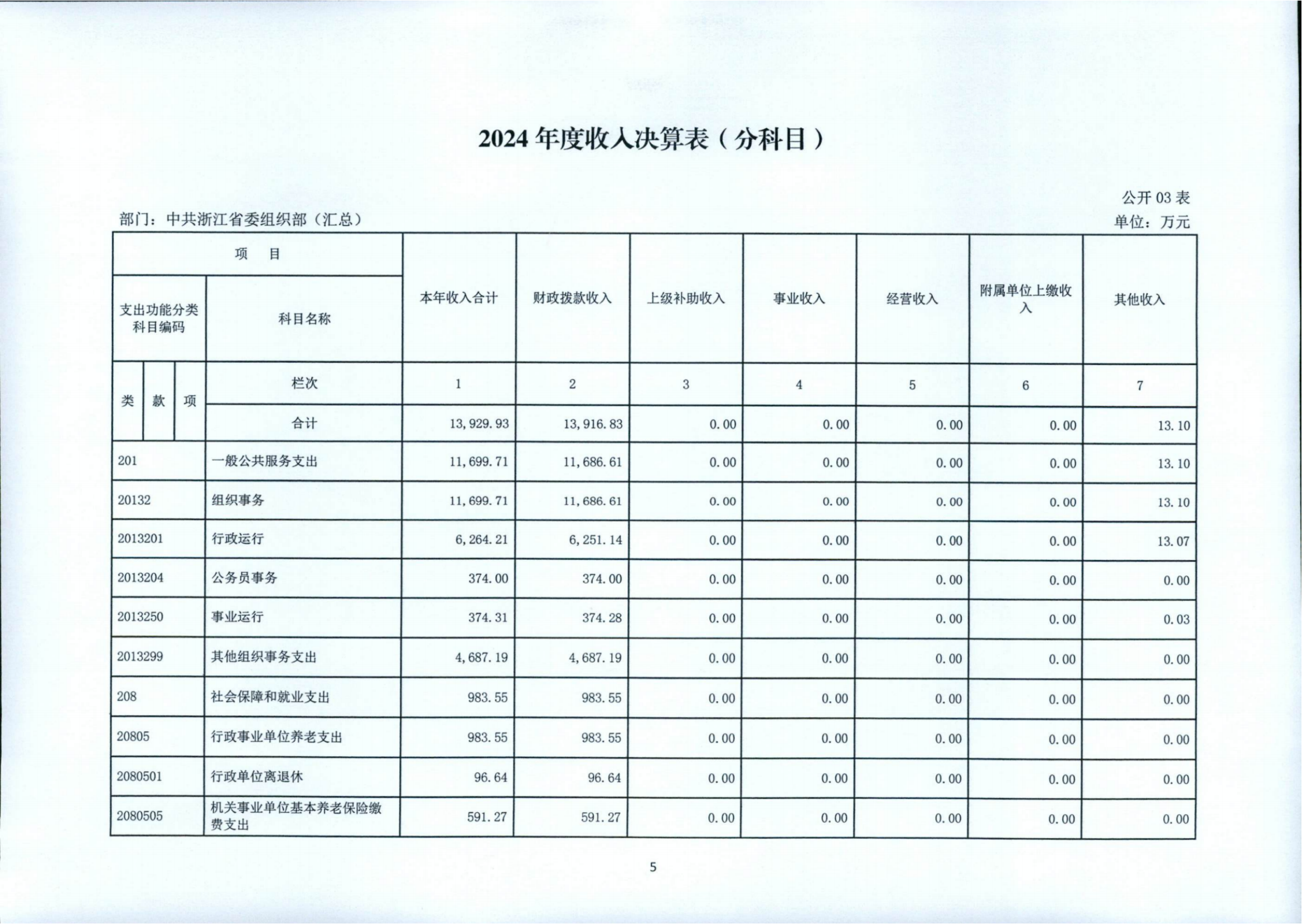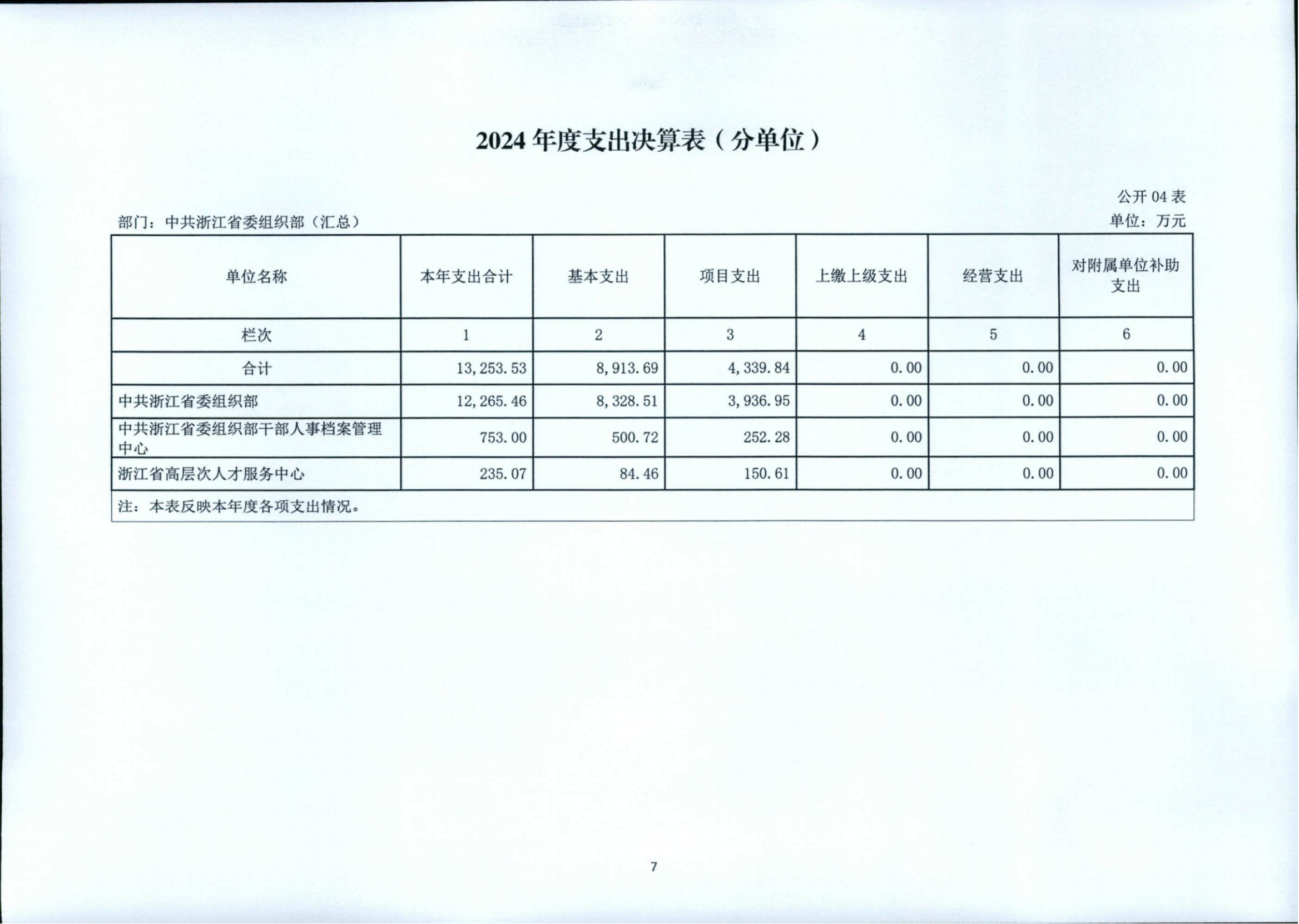 中共浙江省委組織部2024年度部門決算公開